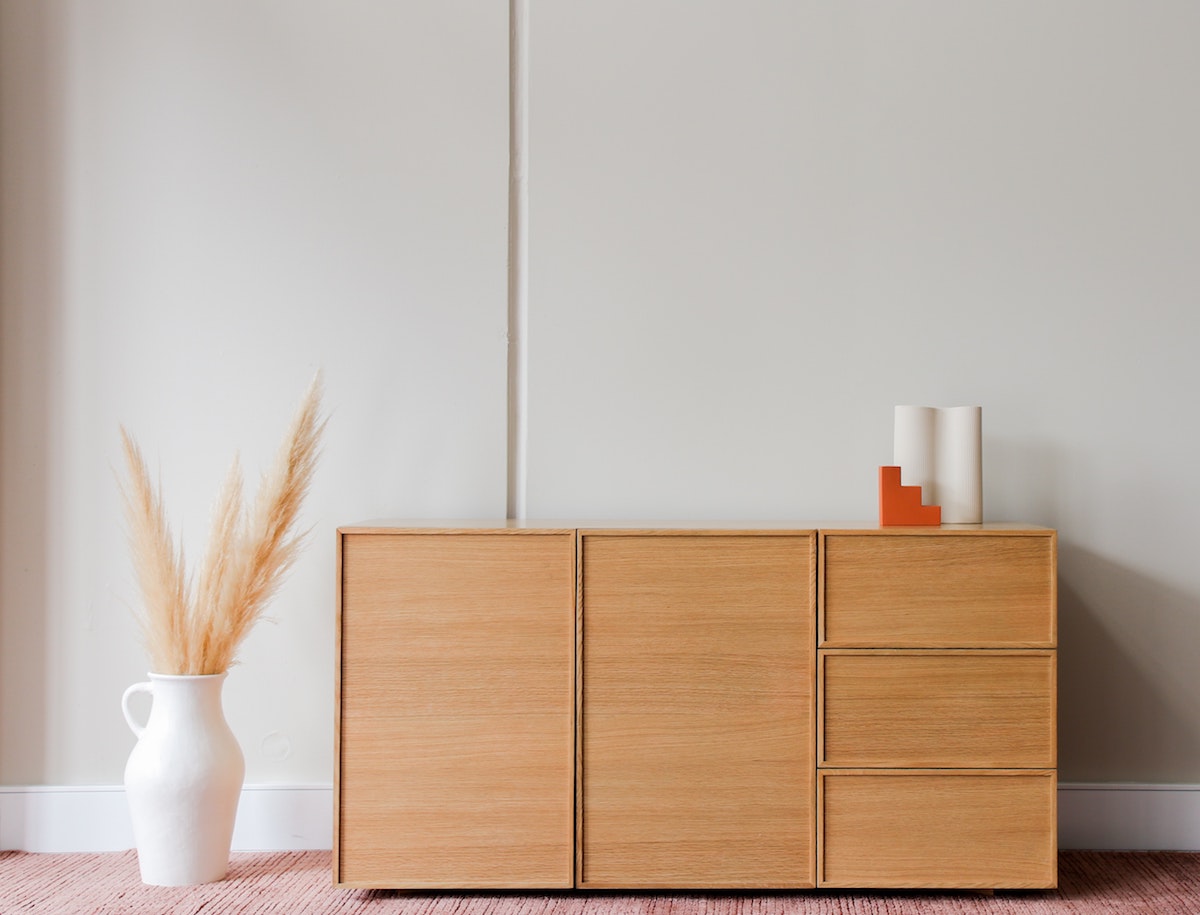 Oblong dresser with both cabinets and drawers to help store away your things in a smart way.